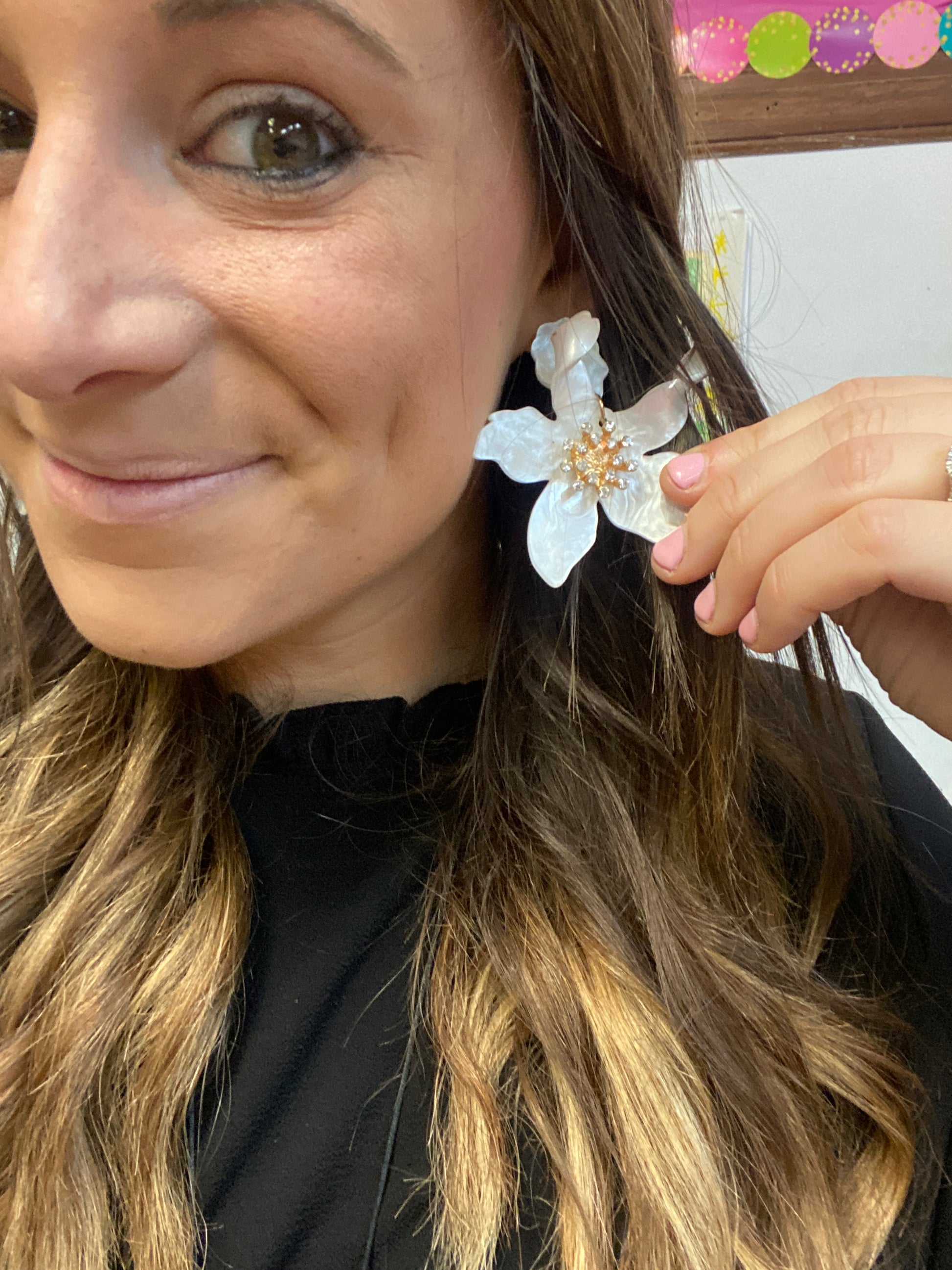 These earrings are made with acrylic and resin with gold plated center to add shine to any outfit!