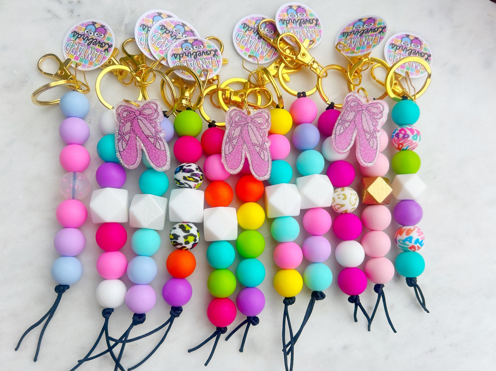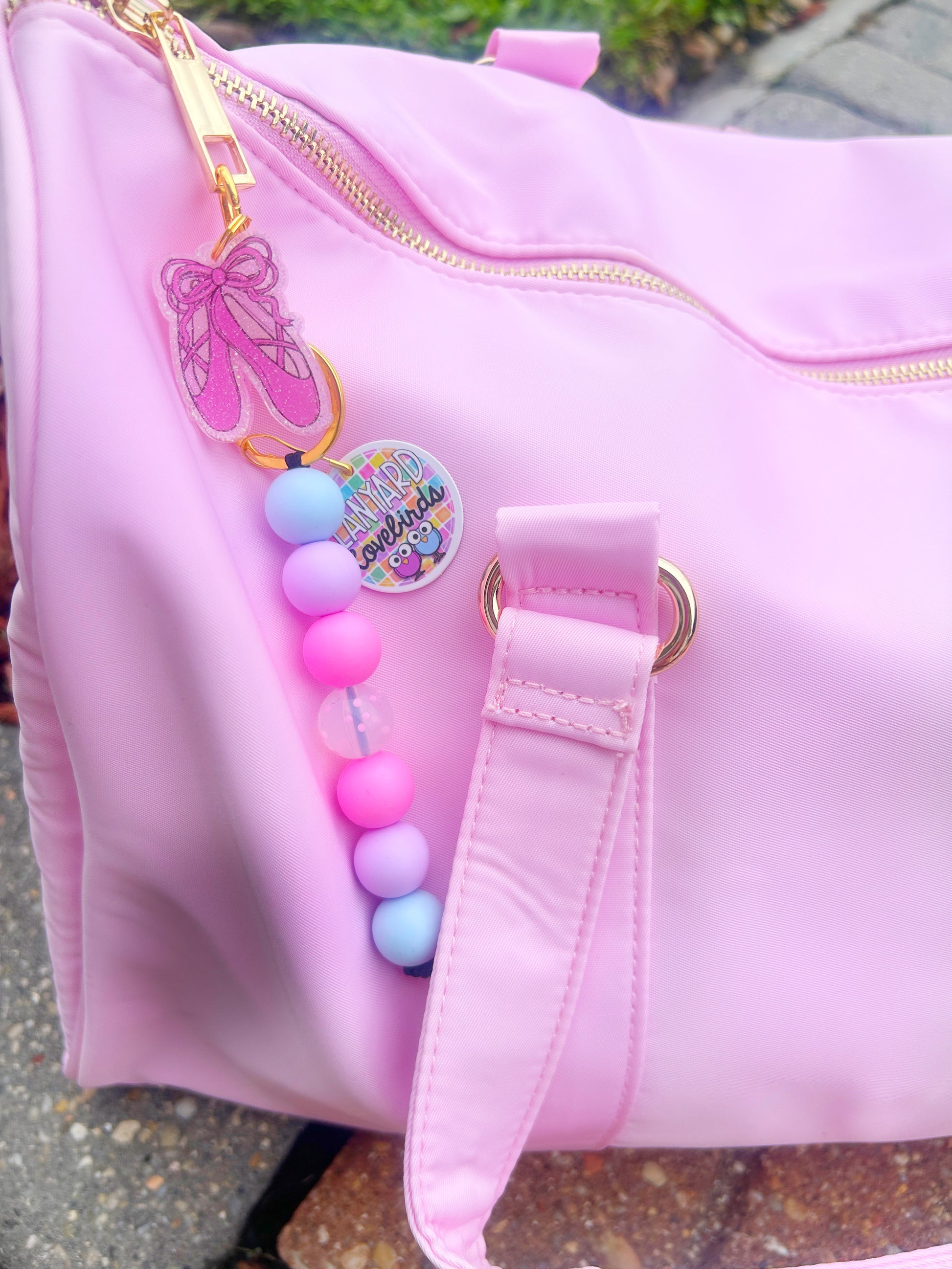 A sweet gift for the little ballerina in your life! This keychain goes perfectly on a dance bag, school bag, or duffle bag!