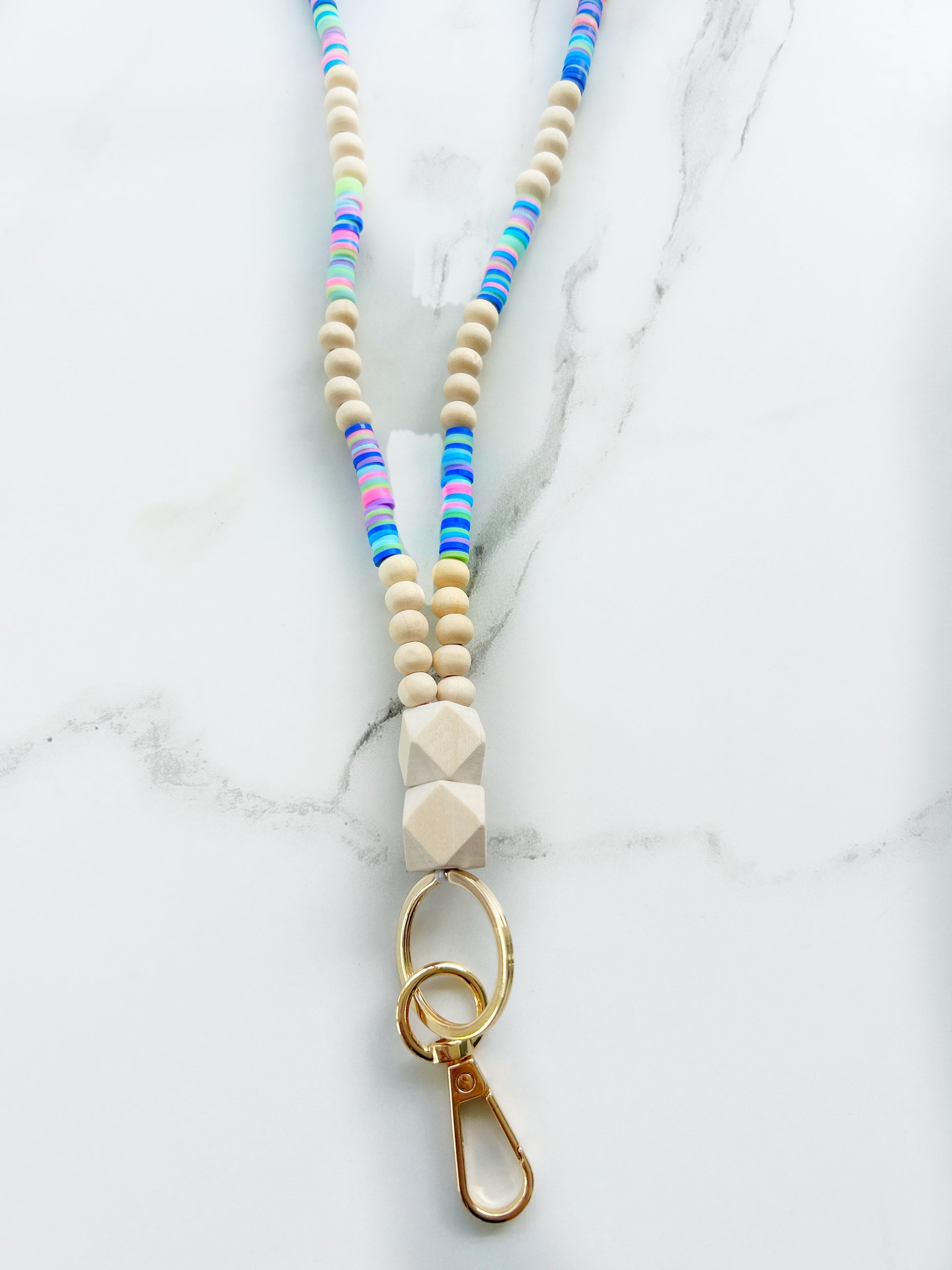 This lanyard may be fully beaded but it’s super lightweight! It is made with different types of beads, a metal split ring, and a metal hook. The lanyard makes it easy for you to attach your keys, school ID, or anything you need easily accessible throughout your day!