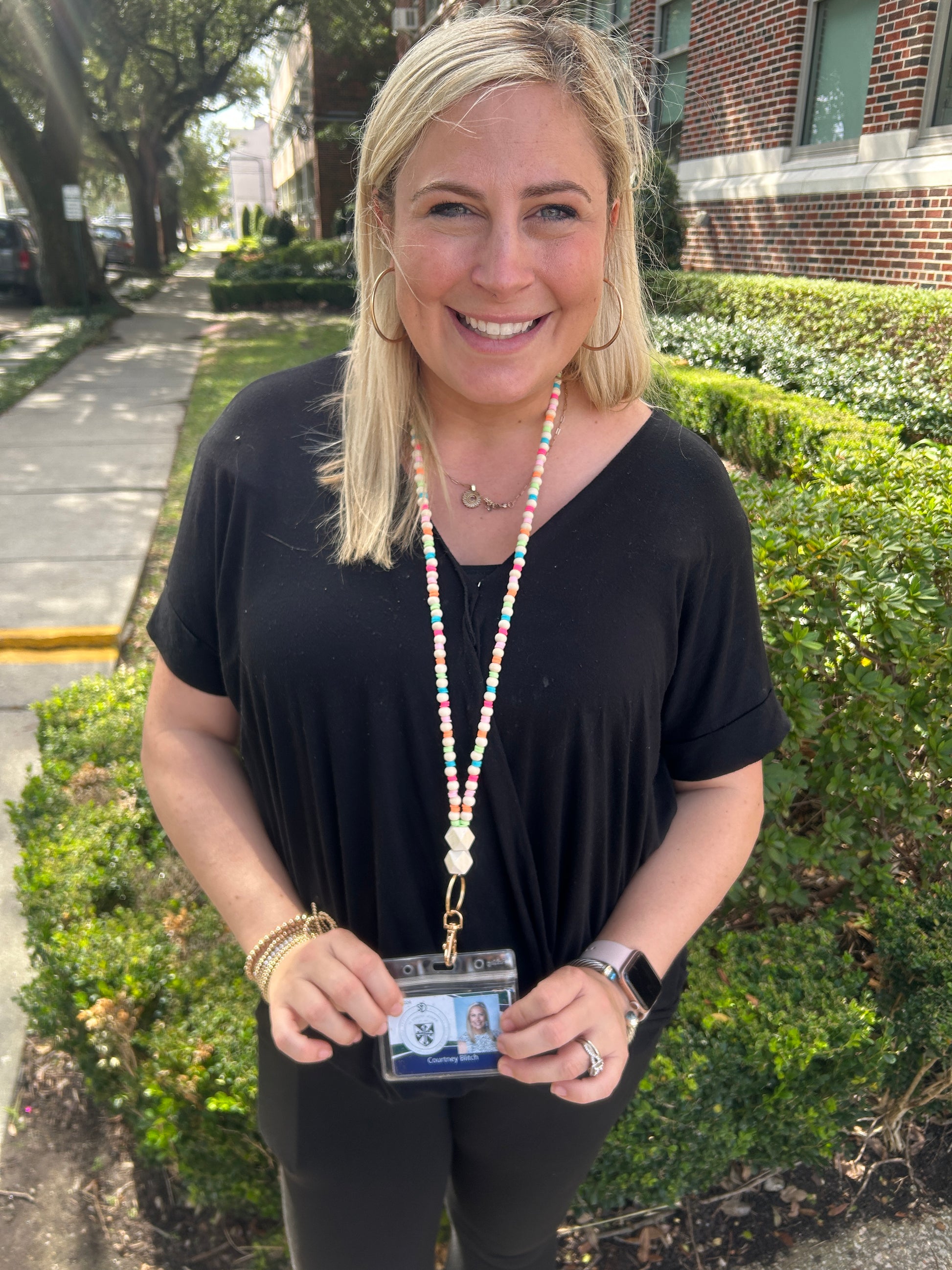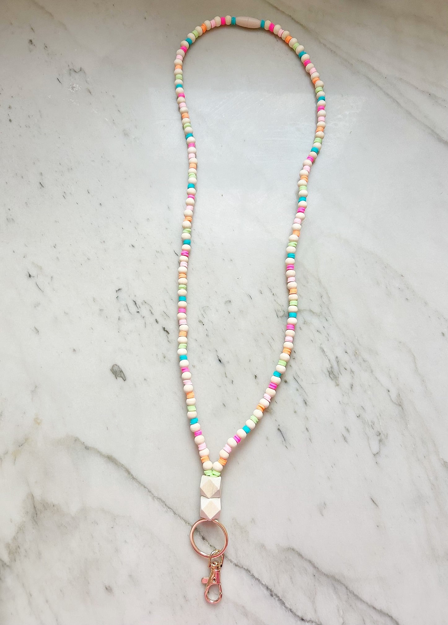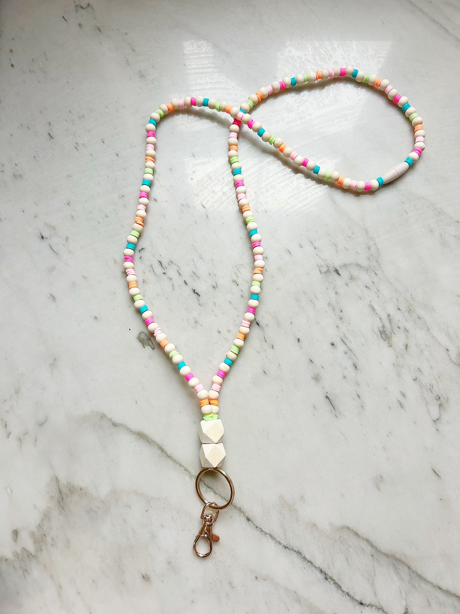 This lanyard may be fully beaded but it’s super lightweight! It is made with different types of beads, a metal split ring, and a metal hook. The lanyard makes it easy for you to attach your keys, school ID, or anything you need easily accessible throughout your day!